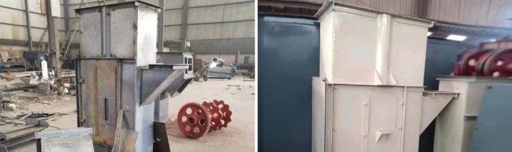 链条斗式提升机罩壳(机壳)分上、中、下三有些。上罩壳与驱动设备,驱动滚筒构成提升机头部。为使物料卸出,头部没有卸料槽。机头罩壳的形状应做成使料斗中抛出的物料能够进入卸料槽中去。下部罩壳与张紧设备,张紧滚筒构成链条斗式提升机底座。底座罩壳方法应和物料装载进程相适应,并没有装料口使物料装入。为了对装卸料进程进行查询,便于修补,可在罩壳的恰当有些开查询孔和检查孔。关于从料堆上直接挖取物料的提升机,底部做成敞开式的。链条斗式提升机的中部罩壳是整段或分段的矩形罩壳,用薄钢板焊接而成,分段罩壳的螺栓联接外应加密封设备。关于滚筒标准较小或低速的链条斗式提升机可选用有载分支和无载分支共用的单通道中部罩壳。单通道的较为简略经济,也有利于通道内压力的平衡。关于滚筒直径较大或高速的链条斗式提升机,则可选用有载分支与无载分支各装一个中部罩壳的双通道方法,可防止两个分支的料斗在同一个中部罩壳双向运动而致使的粉尘涡流。