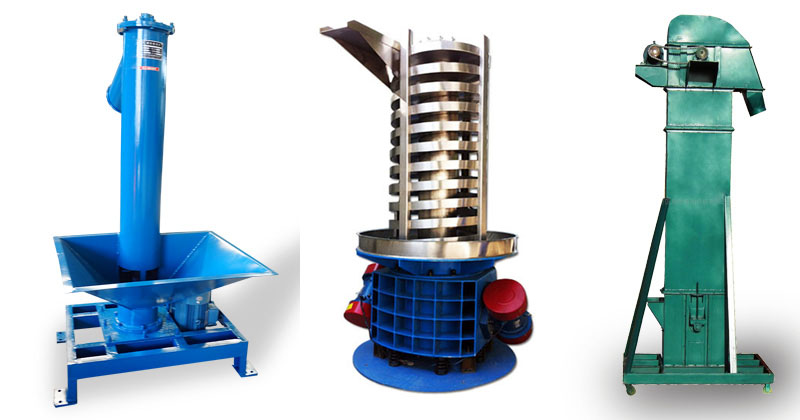 提升机类型主要有螺旋提升机,振动提升机和斗式提升机三种,它们都是用于垂直提升粉状、颗粒状或大块状物料的,但是它们的提升高度以及提升量有一定的差异,其中斗式提升机提升的高度最高可达50米,而需要在提升过程中对物料进行干燥冷却就需要选择振动提升机。