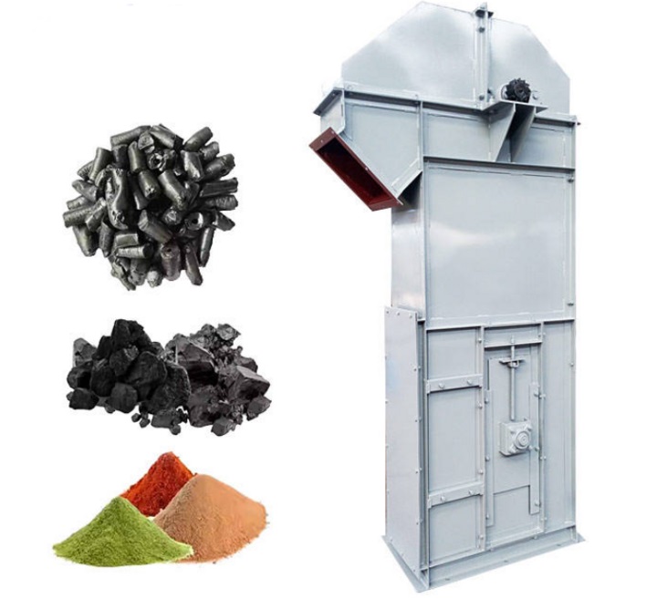 斗式提升机是一种垂直提升物料的设备,它是利用皮带或合金钢锻造的圆环链将一系列(多个)料斗连续均匀的布置在其上面,再配上驱动装置(包含电机、减速机)促使设备工作通过提升机机座下部装料,然后运行提升到顶部卸出,来完成输送各种不同的物料。主要作用是垂直输送。