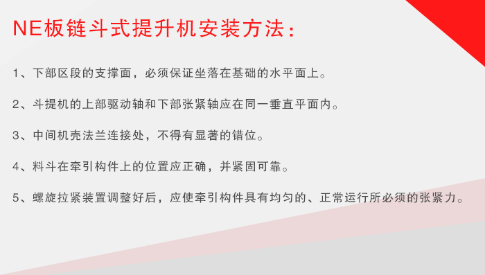 2、斗提机的上部驱动轴和下部张紧轴应在同一垂直平面内。