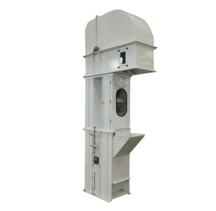 当两根链条都断开后就会有四个链条头,把提升机运转时向上运动的两个链条头从端盖人孔门处伸出提升机,并在这两个接头处接上新的链条,将链条送入提升机箱体内,新链条另一端一直留在箱体外,箱体中送入的链条达到一定量后点动提升机(注意不要过量)。把向下运动的两跟链条从两个便捷人孔门伸出提升机箱体,链条伸出箱体的多少应为刚出人孔门为宜,如果较长应将其去掉,以便点动提升机时有足够的空间放置从提升机内退出的链条。这样用新链条置换旧链条的方法更换链条,在此要特别注意,更换时两根链条要同时工作,正常情况下半天即可完成大链条的更换工作。