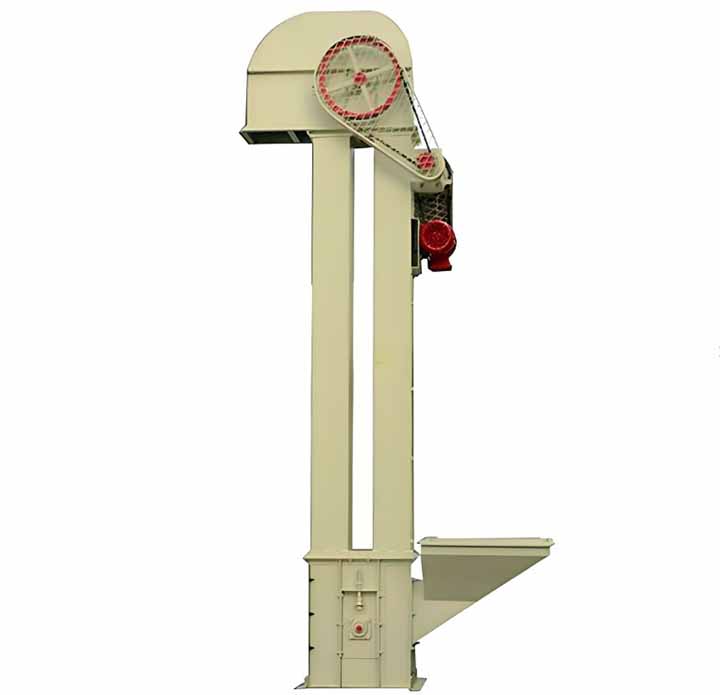 一般来说,物料的形态直接决定物料的卸料方式,常用规律为粉状物料采用离心抛射卸料、块状物料采用重力卸料,而卸料方式的不同决定斗式提升机采用的料斗形式的不同,离心抛射卸料多采用浅斗和弧形斗,而重力卸料需采用深斗。斗提机所采用料斗的类型不同则单位时间内提升的物料输送量是不一样的。斗式提升机终的输送量是取决于料斗形式、斗速、物料比重、物料性质、料斗数量的一个综合参数。选型过程如下:物料比重→传动方式(斗提型号)→物料性质→卸料方式→料斗形式→该系列斗式提升机的提升量→确定机型。