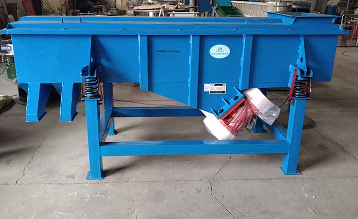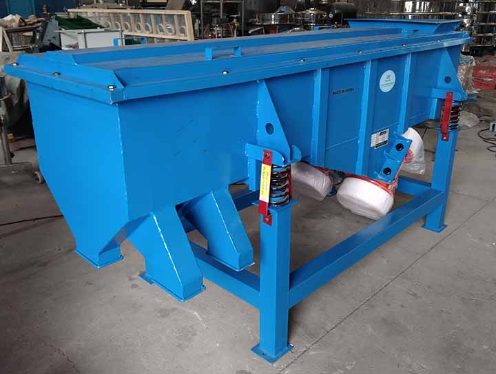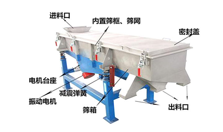 525-4P直线振动筛主要由筛箱、筛框、筛网、振动电机、电机台座、减振弹簧、支架等组成。