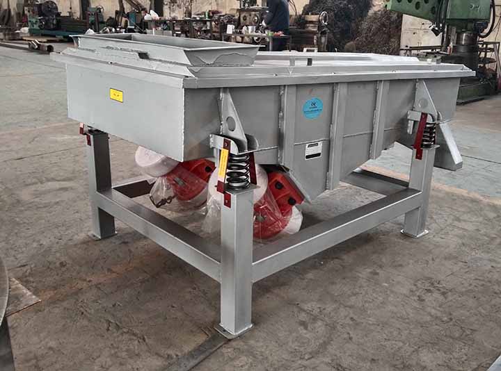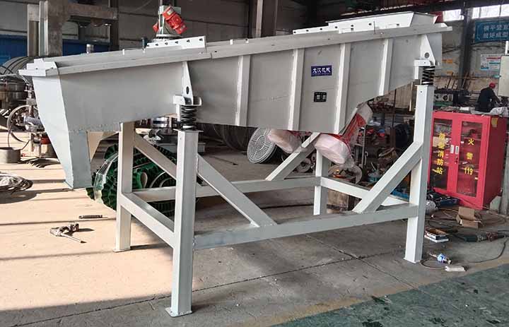 3、闭合电源开关,确认振动电机同步反向旋转,进行10-20分钟空运转,设备在运行时如有异常声音,应迅速关机进行检查处理。设备运转正常后,可将少量需筛分的物料通过进料口设入筛机内,确认物料向出料口方向行进,然后逐渐增加到所需和所能承受的给料量。