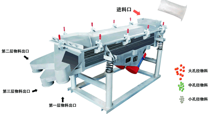 1030不锈钢直线振动筛的筛分过程概括来说是物料通过进料口均匀的进入直线筛,通过各不同层次筛网筛分多种规格的筛上物、筛下物,又从不同的出料口排出,达到筛分目的。1030不锈钢直线振动筛具有产量高、能耗低、结构简单、易维修、全封闭结构、无粉尘溢散、自动排料等特点,更适合流水线作业。